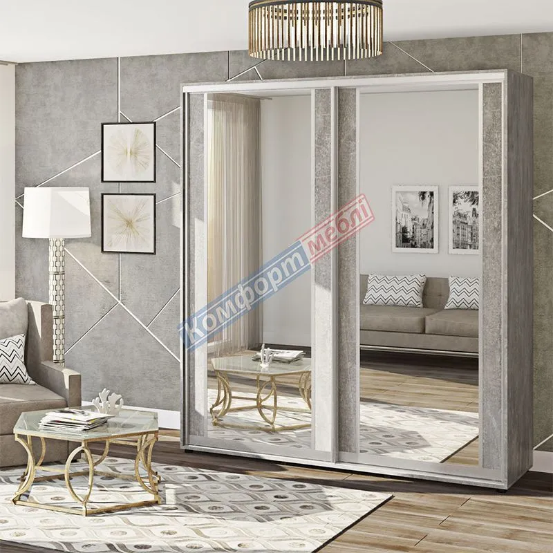 Шафа-купе 1600 мм Комфорт "Модель 7" 2 дверна Бетон світлий