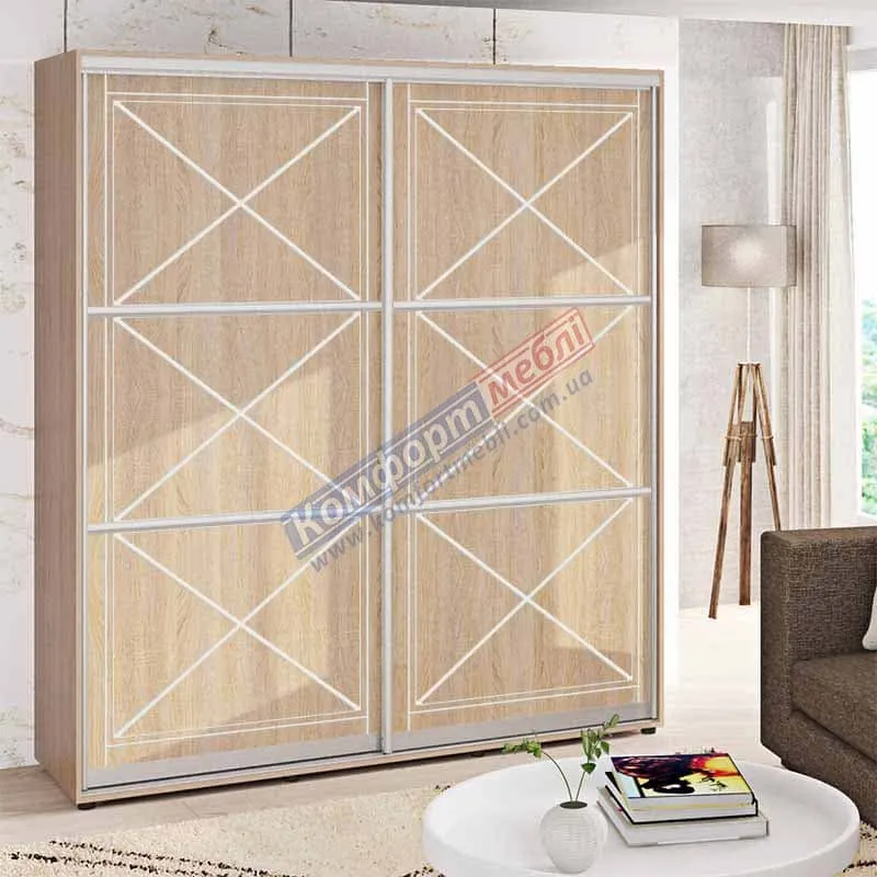 Шафа купе 2.0 метра Комфорт "Прованс" глянець 2 дверна дуб сонома