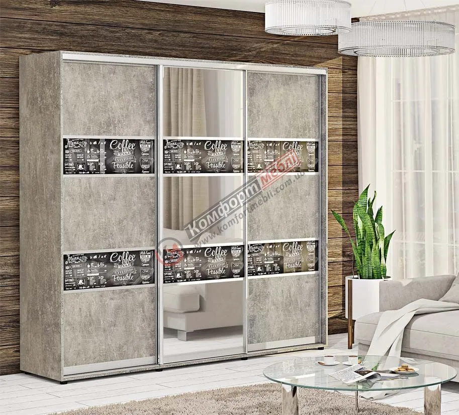 Шафа купе 2.1 метра Комфорт "Модель 3" трьохдверна в кольорі бетон