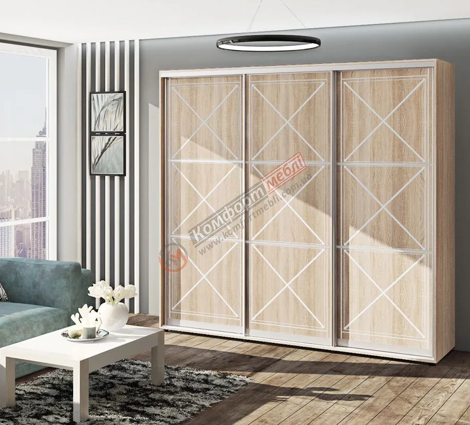 Шафа-купе 2,1 метра Комфорт "Прованс" глянець 3 дверна дуб сонома
