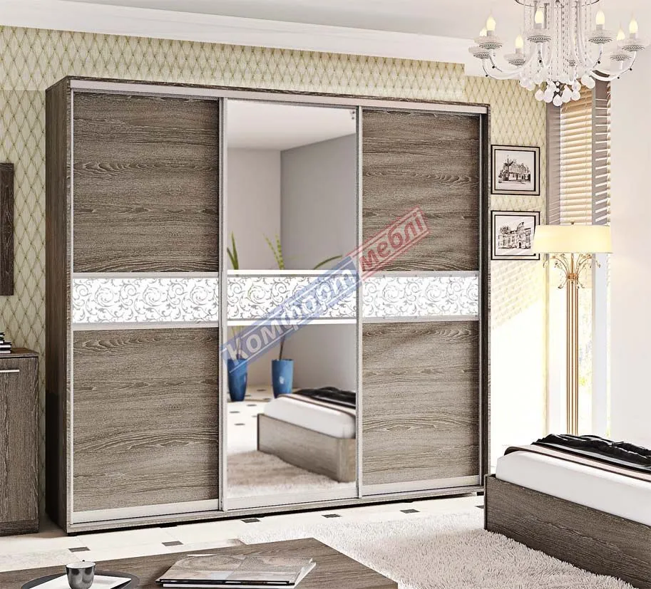 Шафа-купе 2,2 м Комфорт "Модель 2" 3 дверна в кольорі дуб трюфель