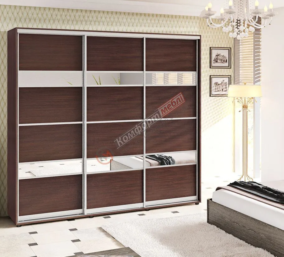 Шафа купе 2.2 метра Комфорт "Модель 5" тридверна колір венге