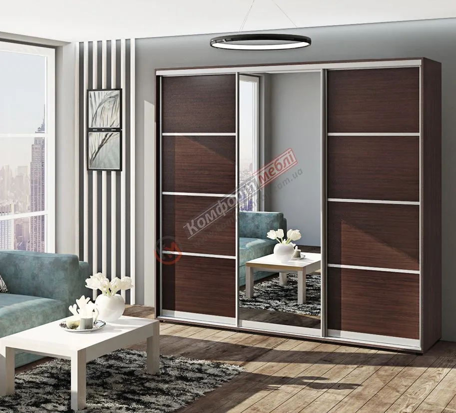 Шафа купе 2.2 метра Комфорт "З 4-х частин" тридверна дуб венге