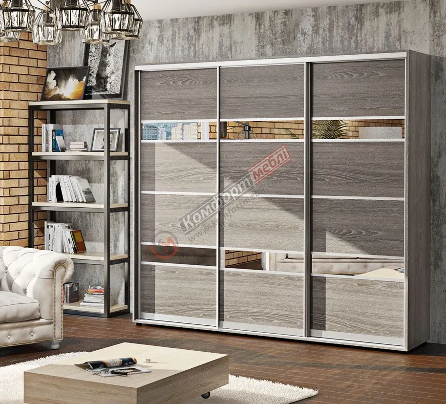 Шафа-купе 2,4 м Комфорт "Модель 5" 3х дверна дуб трюфель