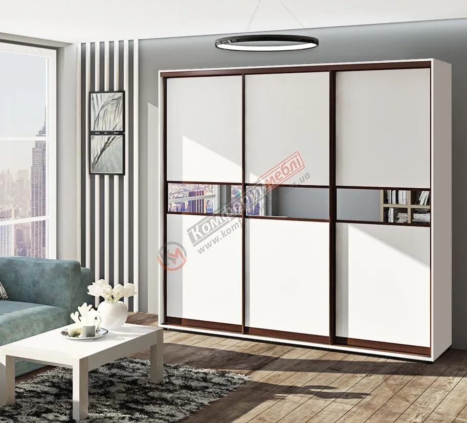 Шафа купе 2,5 метра Комфорт "Модель 2" трьохдверна білого кольору