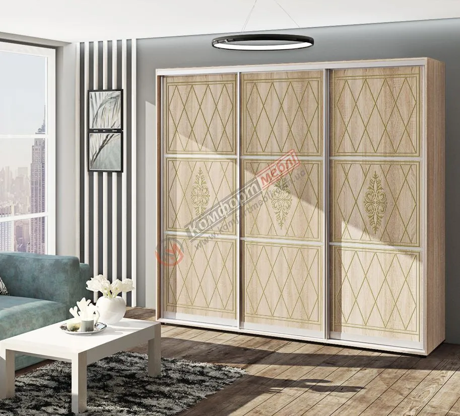 Шафа купе 2.6 метра Комфорт "Венеція" глянець трьохдверна дуб сонома
