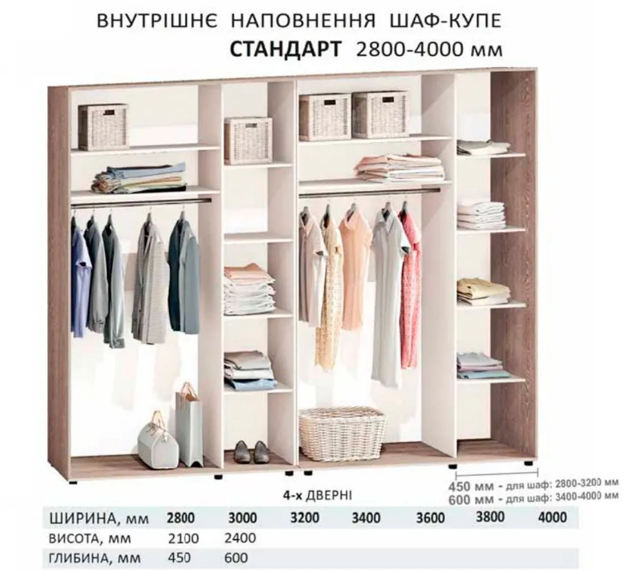 Шафа-купе 2,8 м "ДСП" глянець 4 дверна дуб аппалачі