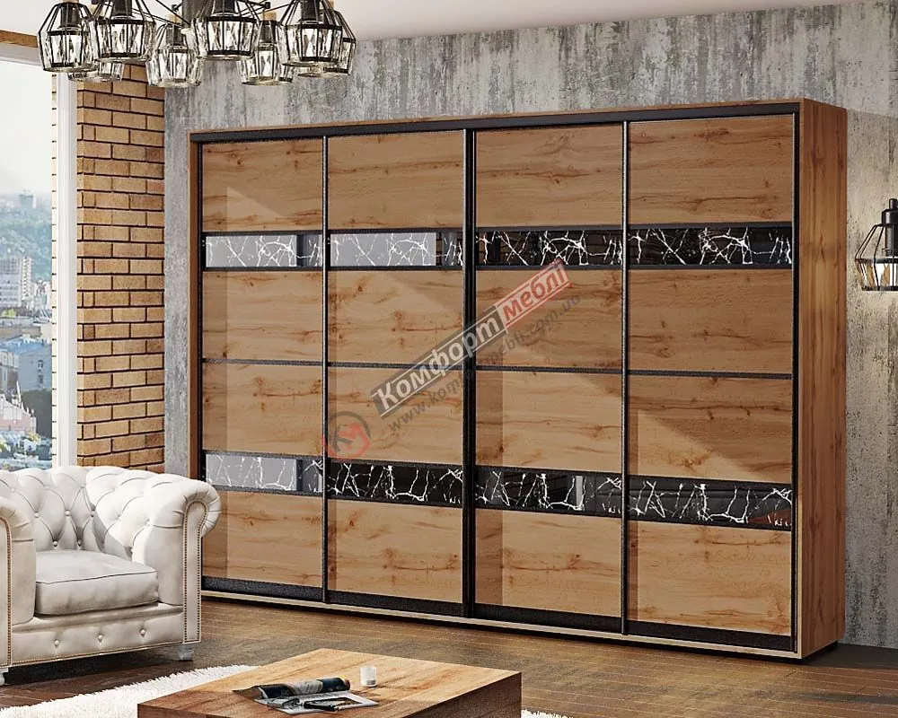 Шафа купе 2.8 метра Комфорт "Модель 5" 4х дверна дуб золотий