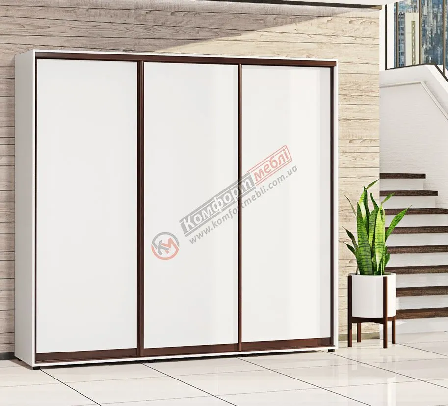 Шафа купе 210 см Комфорт "ДСП" тридверна білого кольору