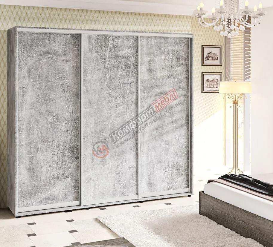 Шафа-купе 2100 мм Комфорт "ДСП" 3 х дверна бетон світлий