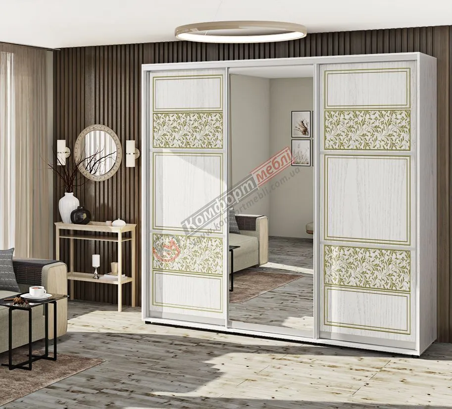 Шафа-купе 2100 мм Комфорт "Валенсія" глянець 3 дверна білений дуб