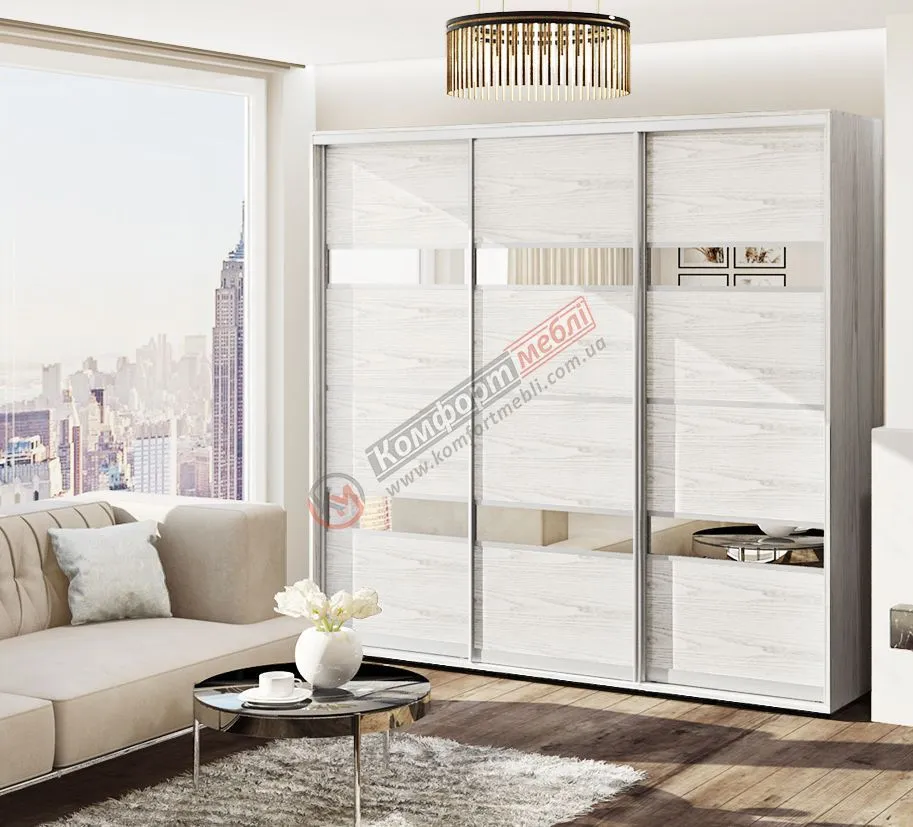 Шафа-купе 2200 мм Комфорт "Модель 5" 3 х дверна дуб білений