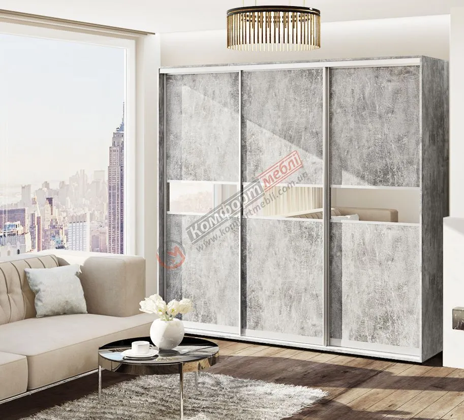 Шафа-купе 2300 мм Комфорт "Модель 2" 3 дверна бетон