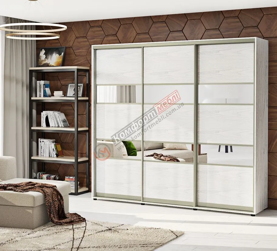 Шафа купе 240 см Комфорт "Модель 3" тридверна дуб білений