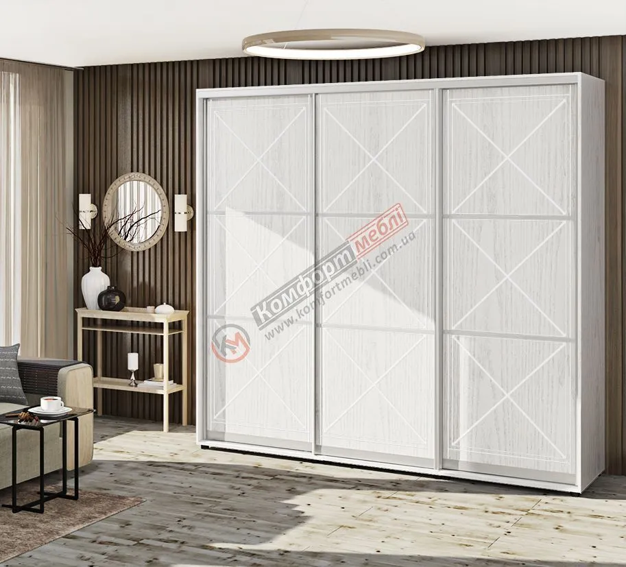 Шафа купе 250 см Комфорт "Прованс" глянець тридверна світла