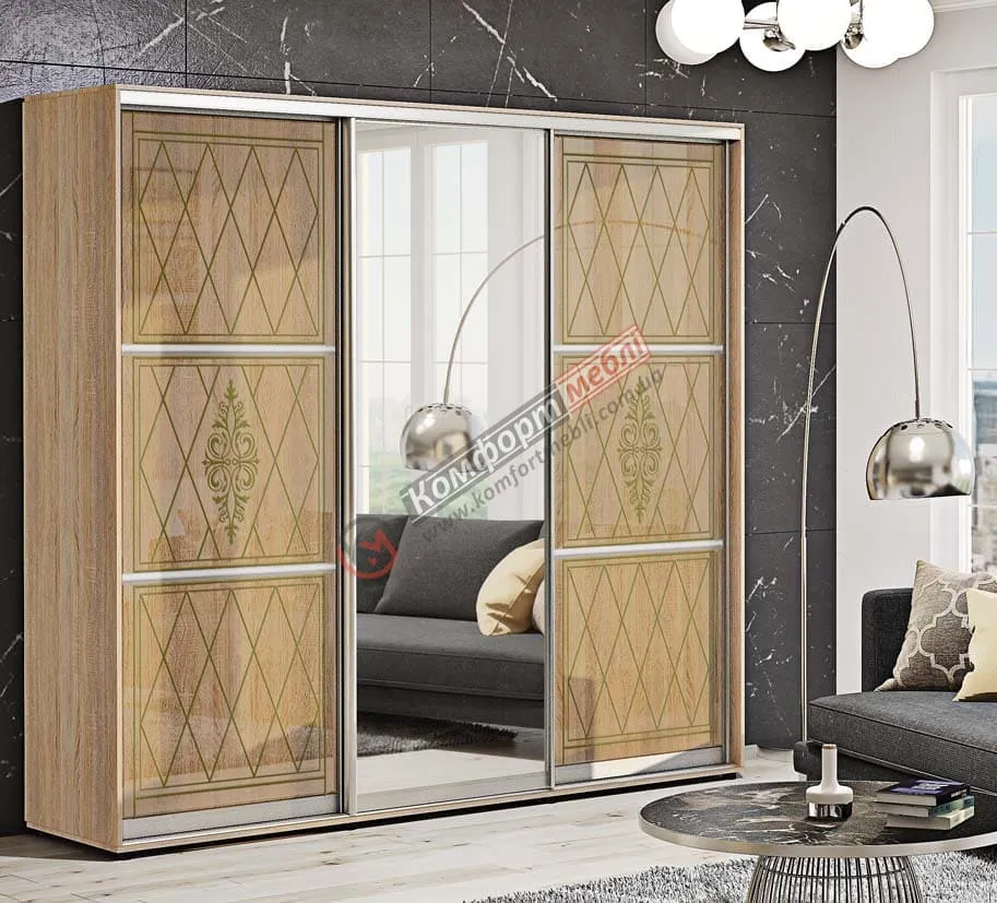 Шафа-купе 2,6 м Комфорт "Венеція" глянець 3 дверна колір дуб сонома