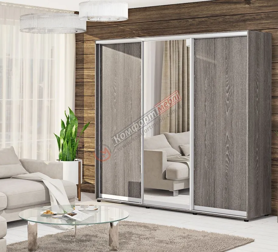 Шафа купе 260 см Комфорт "ДСП" трьохдверна у кольорі дуб трюфель