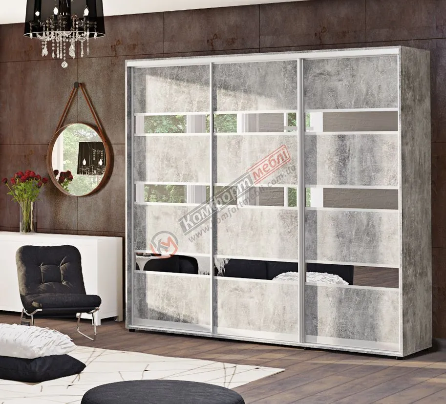 Шафа купе 270 см Комфорт "Модель 4" тридверна бетон світлий