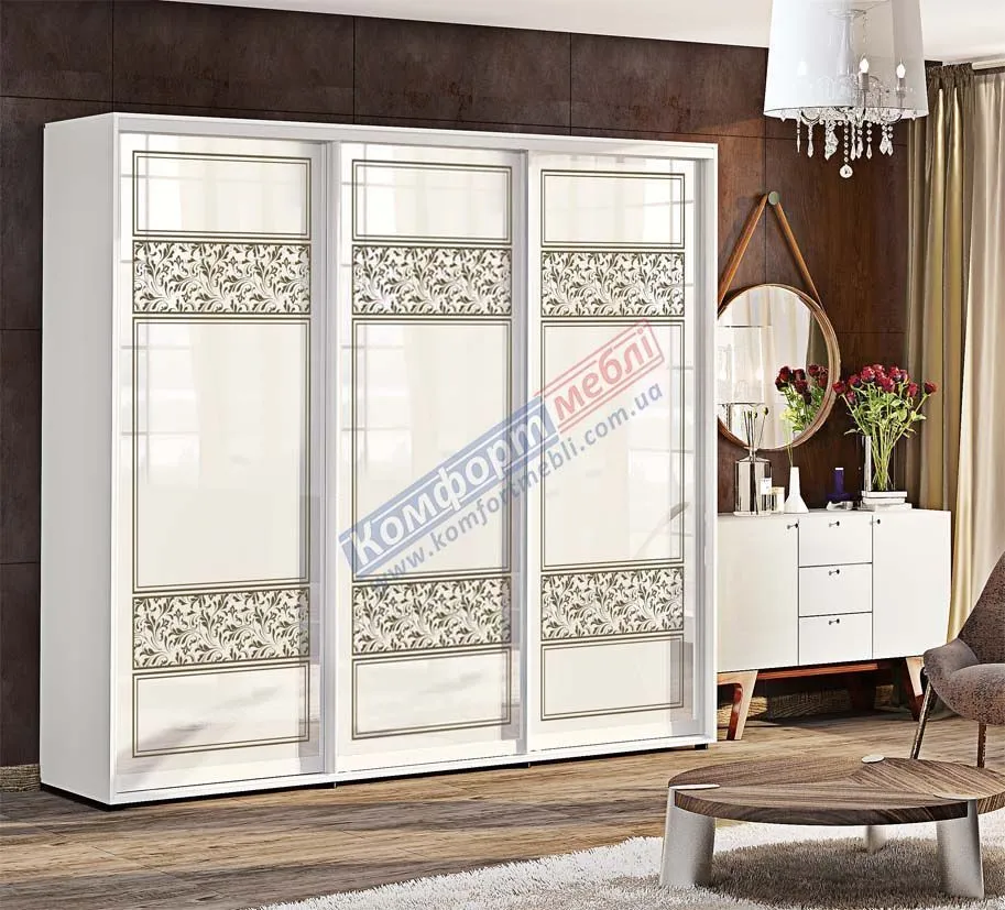 Шафа купе 270 см Комфорт "Валенсія" глянець тридверна Біла