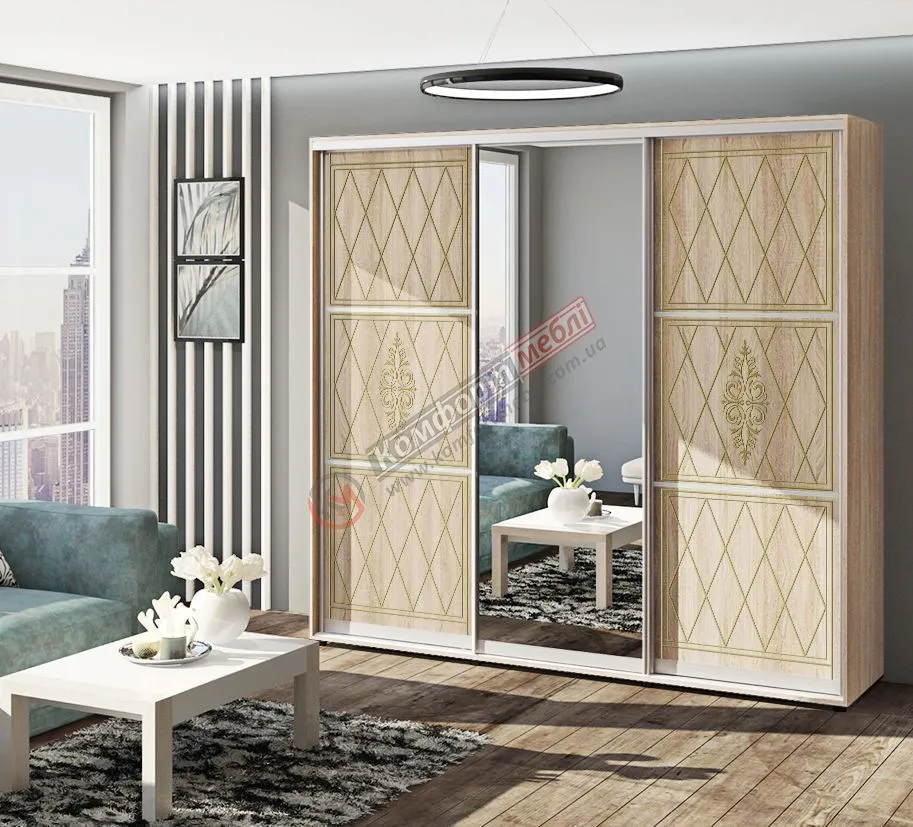Шафа купе 270 см Комфорт "Венеція" глянець 3 дверна дуб натуральний