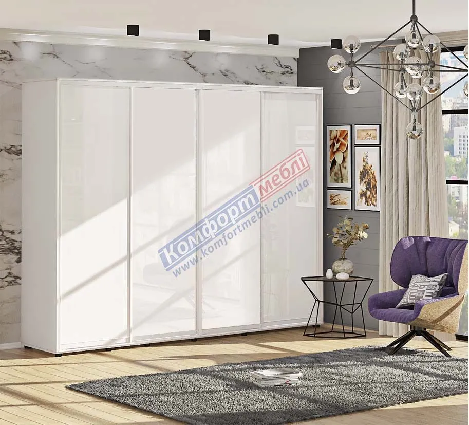 Шафа купе 280 см Комфорт "ДСП" глянець чотирьохдверна білого кольору