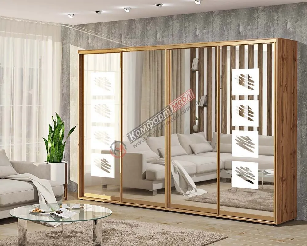 Шафа-купе 3,0 метра Комфорт "Дзеркало" 4 дверна дуб золотий