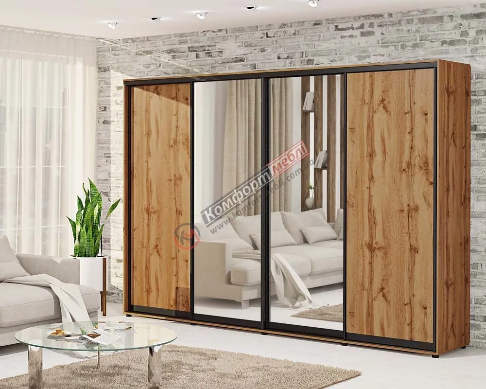 Шафа купе 3.2 м Комфорт "ДСП" з дзеркалом 4 дверна дуб золотий