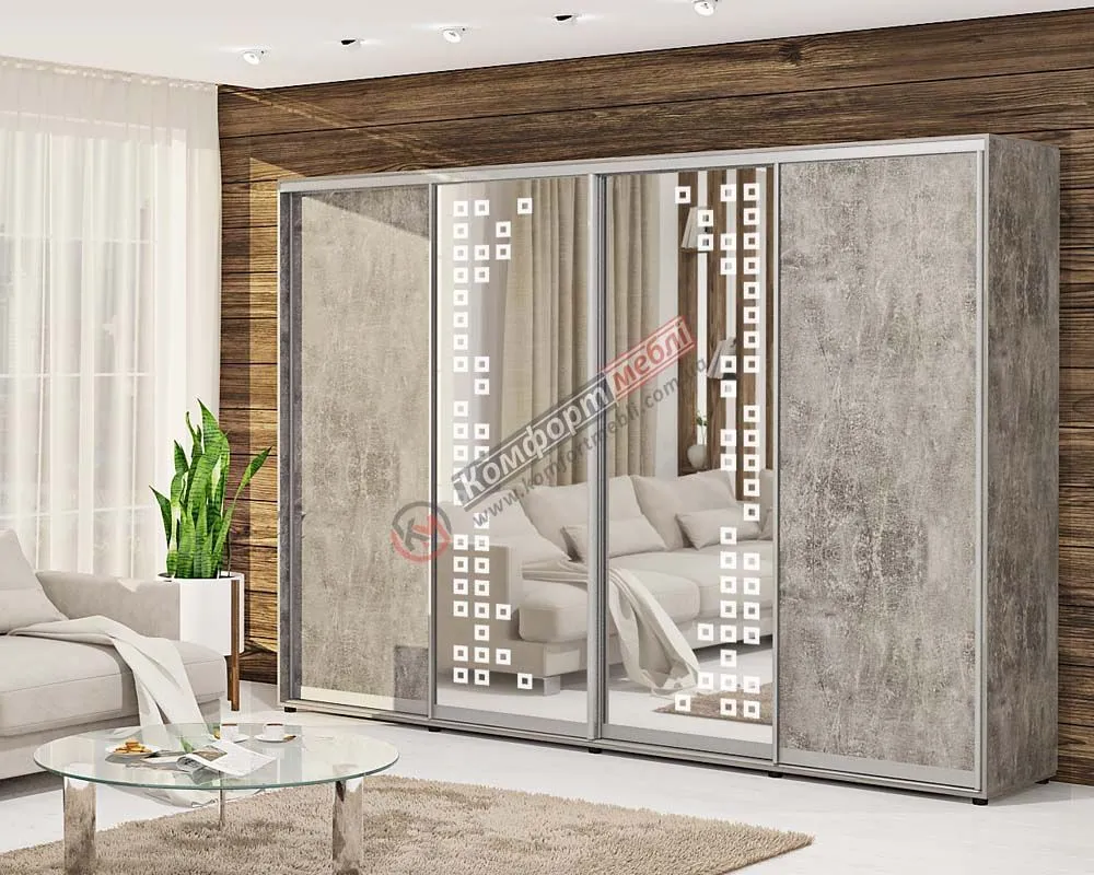Шафа купе 3.2 метра Комфорт "ДСП" з дзеркалом чотирьохдверна бетон