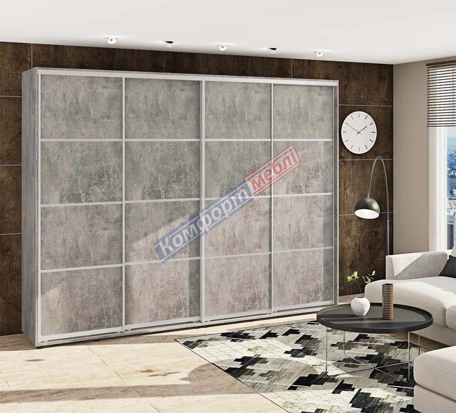 Шафа-купе 3,4 м Комфорт "З 4-х частин" чотиридверна бетон