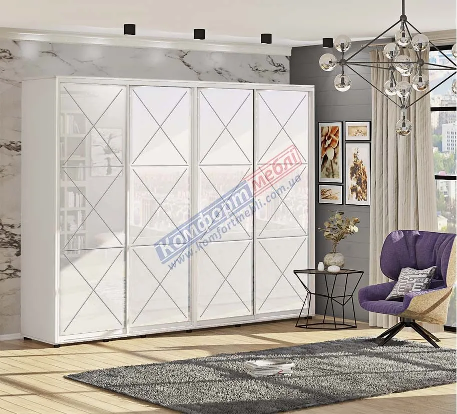 Шафа-купе 3,4 метра Комфорт "Прованс" глянець 4 дверна біла