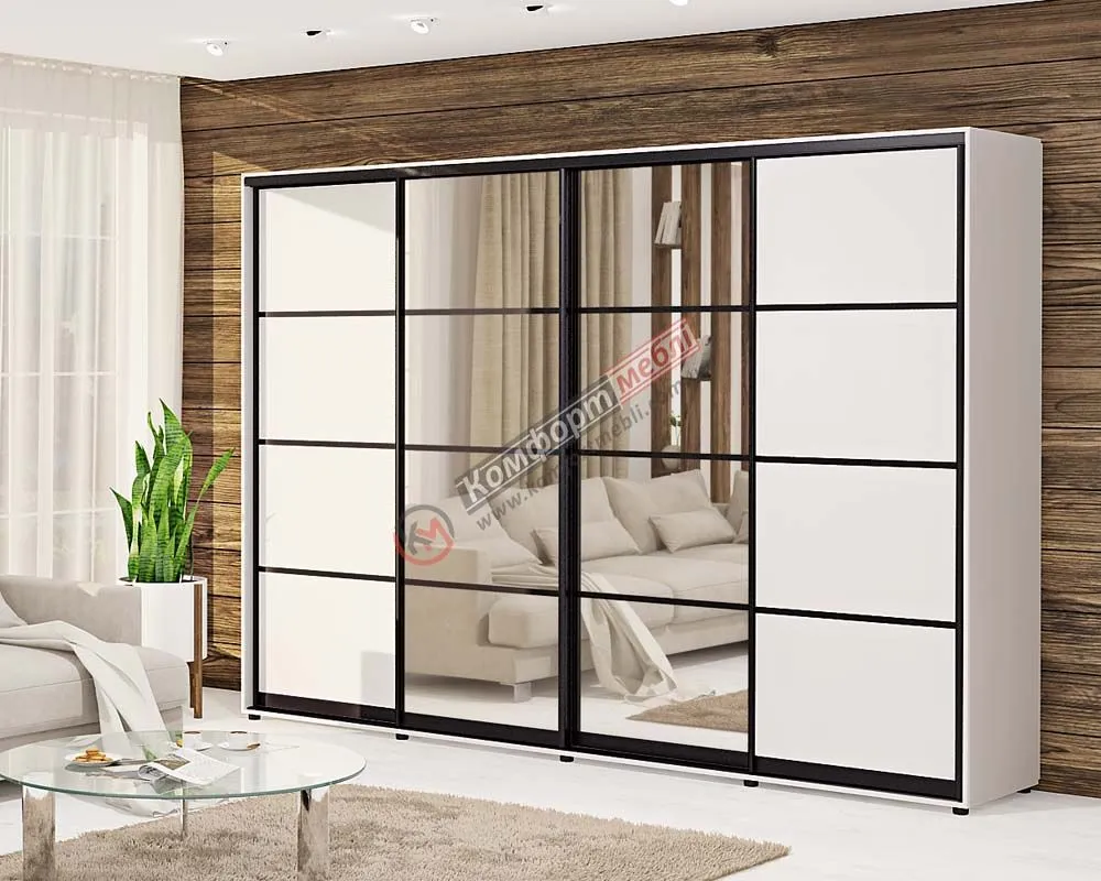 Шафа купе 3.4 метра Комфорт "З 4-х частин" 4 дверна білого кольору
