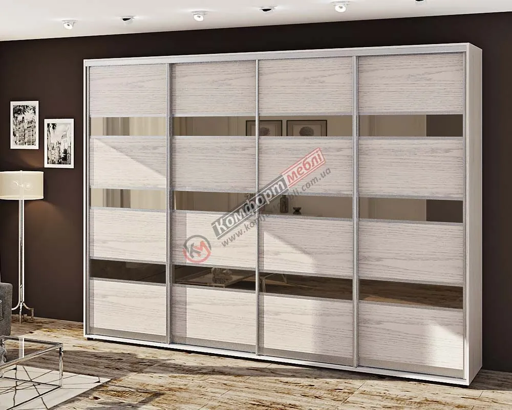 Шафа-купе 3,8 м Комфорт "Модель 4" 4 дверна дуб білений