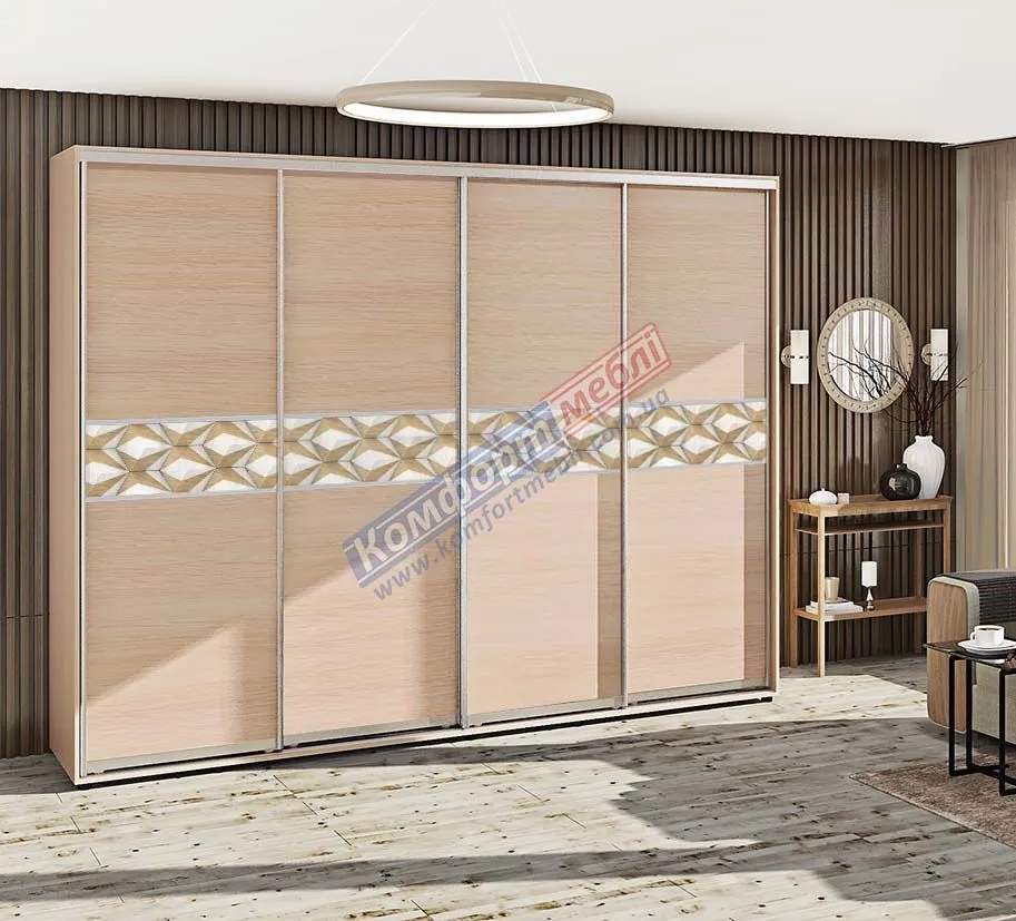 Шафа купе 3 м Комфорт "Модель 2" чотирьохдверна дуб сонома