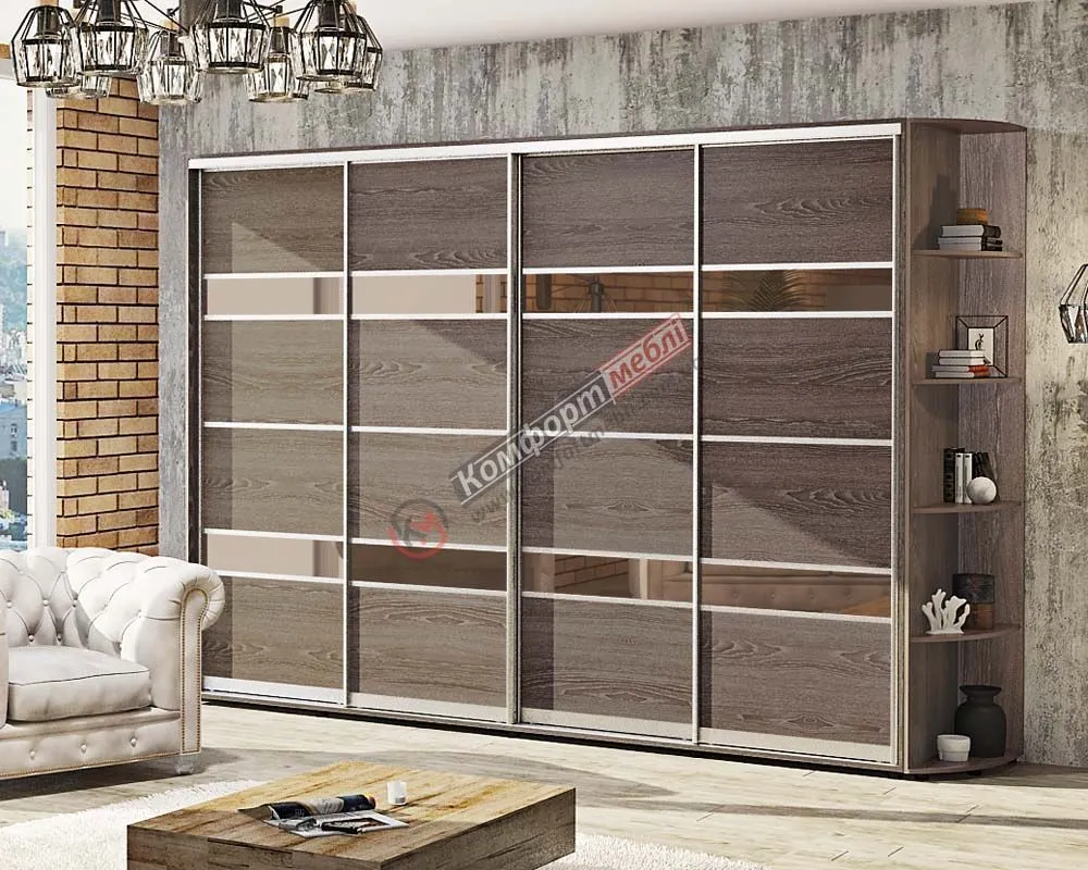 Шафа купе 360 см Комфорт "Модель 5" чотирьохдверна дуб трюфель