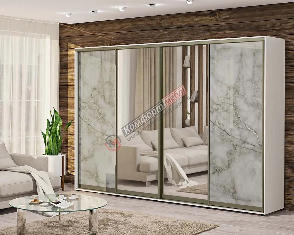 Шафа купе 380 см Комфорт "Скло фотодрук" 4 дверна темно-сіра