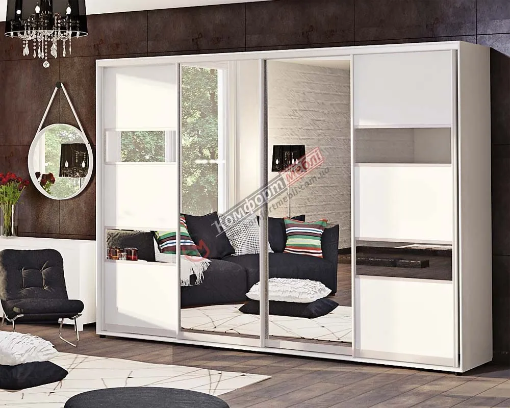 Шафа-купе 3800 мм Комфорт "Модель 3" з дзеркалом чотиридверна біла