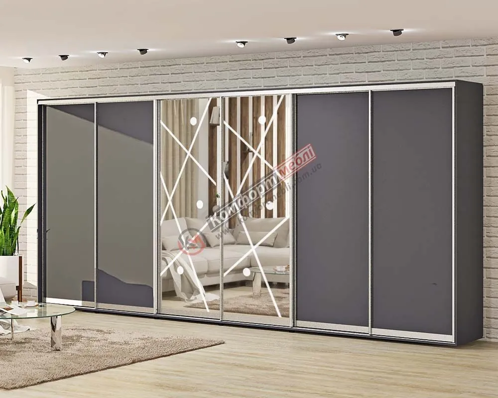 Шафа купе 4.2 метра Комфорт "ДСП" 6 дверна графіт