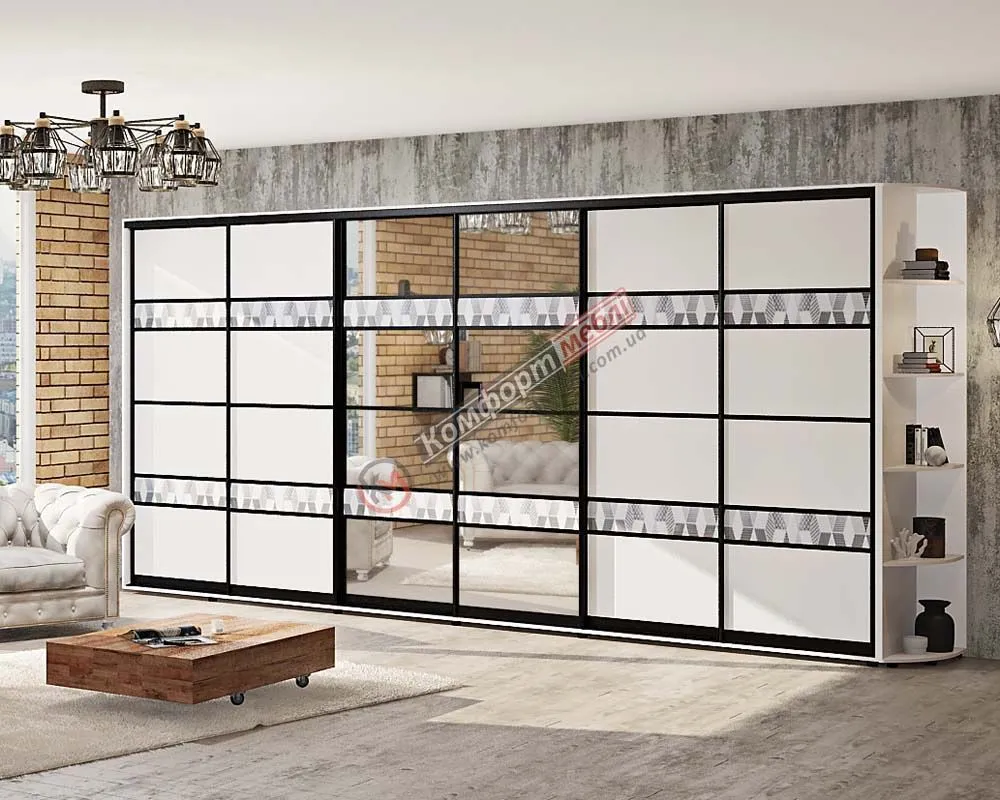 Шафа купе 4.4 м Комфорт "Модель 5" 6 х дверна колір білий