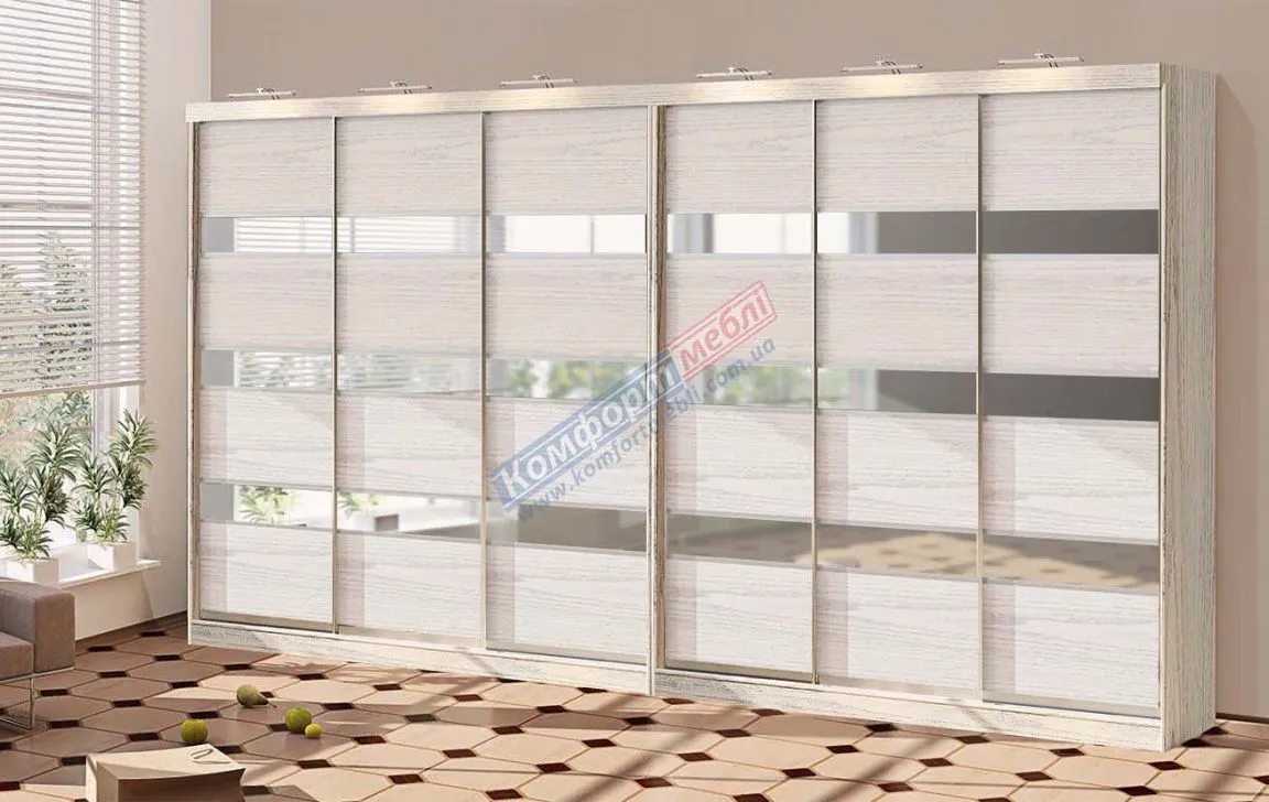 Шафа купе 4.8 метра Комфорт "Модель 4" 6 дверна білений дуб