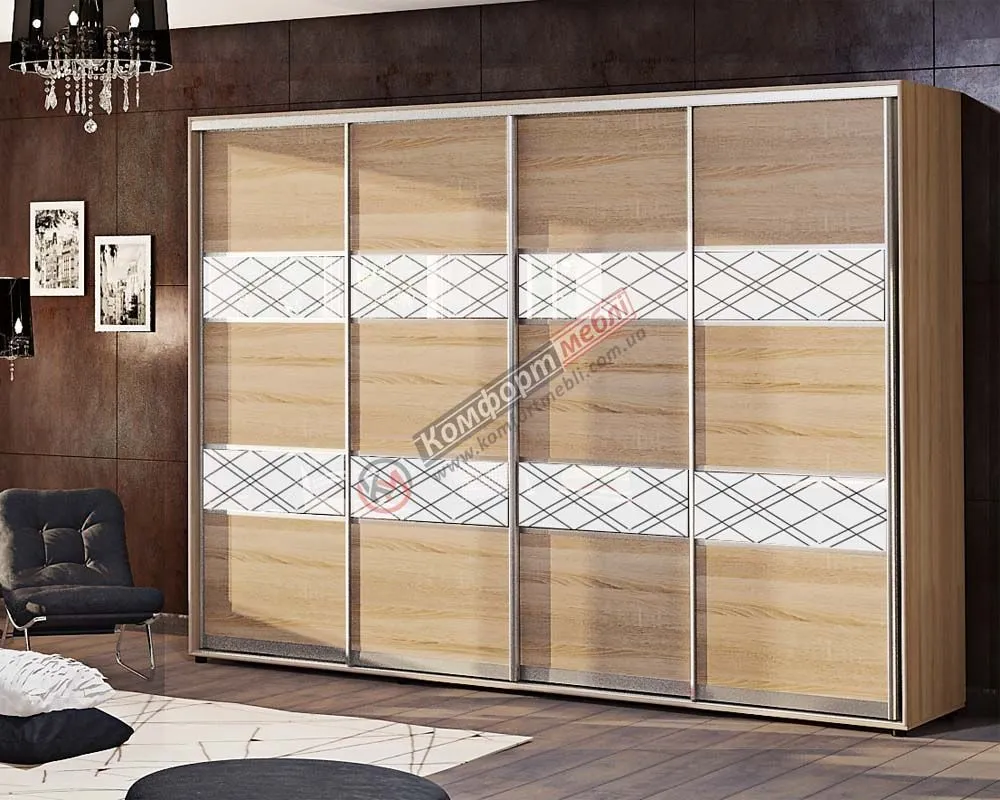 Шафа купе 400 см Комфорт "Модель 3" 4х дверна в кольорі дуб сонома