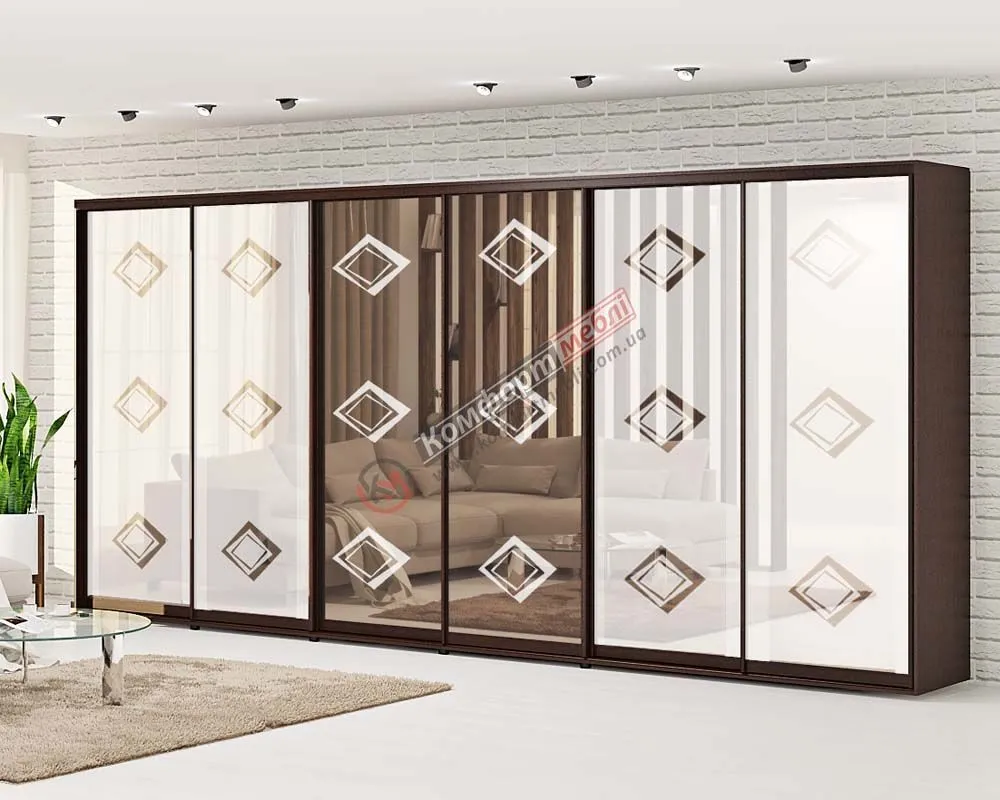 Шафа купе 5.2 м Комфорт "Дзеркало" 6х дверна венге