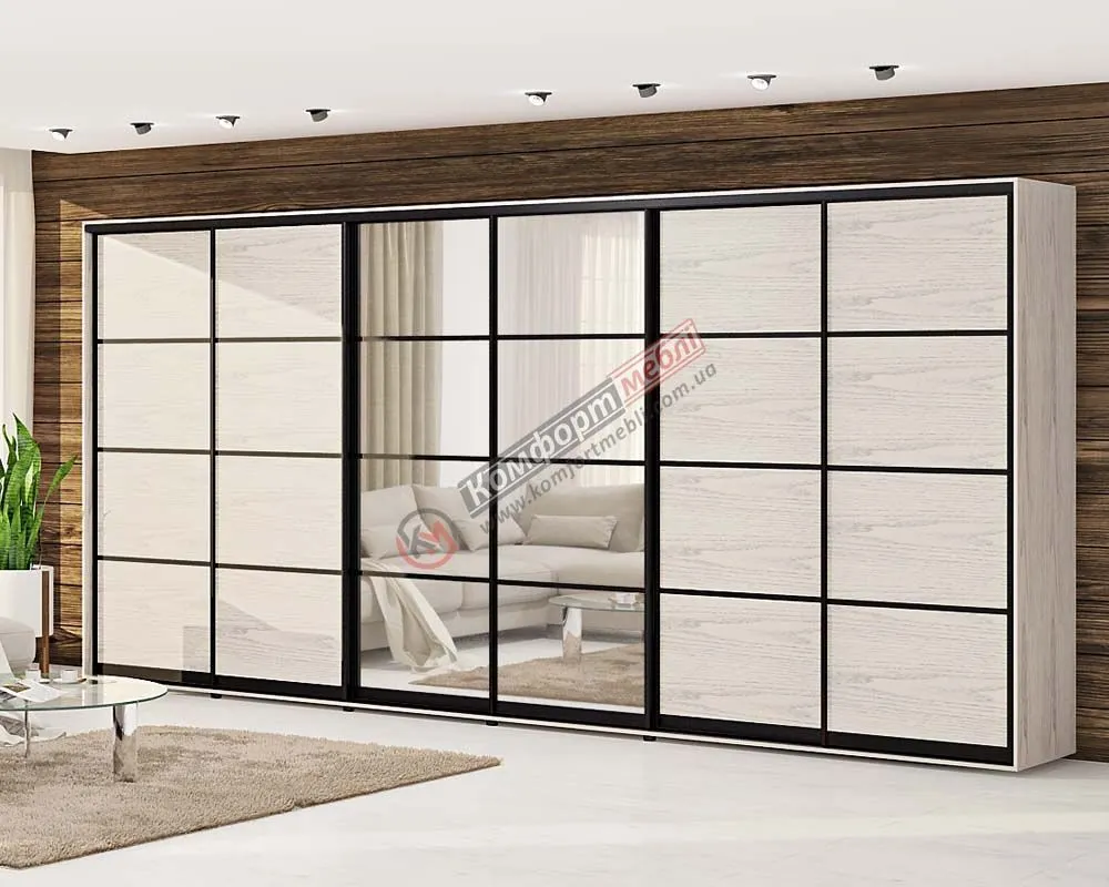 Шафа-купе 5,4 м Комфорт "З 4-х частин" 6 дверна дуб білений