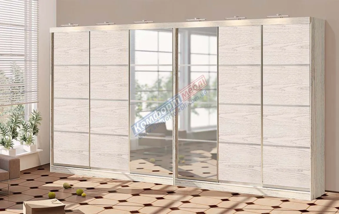 Шафа купе 520 см Комфорт "З 4-х частин" шестидверна дуб білений