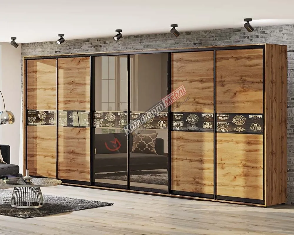 Шафа-купе 5200 мм Комфорт "Модель 2" 6 х дверна дуб золотий