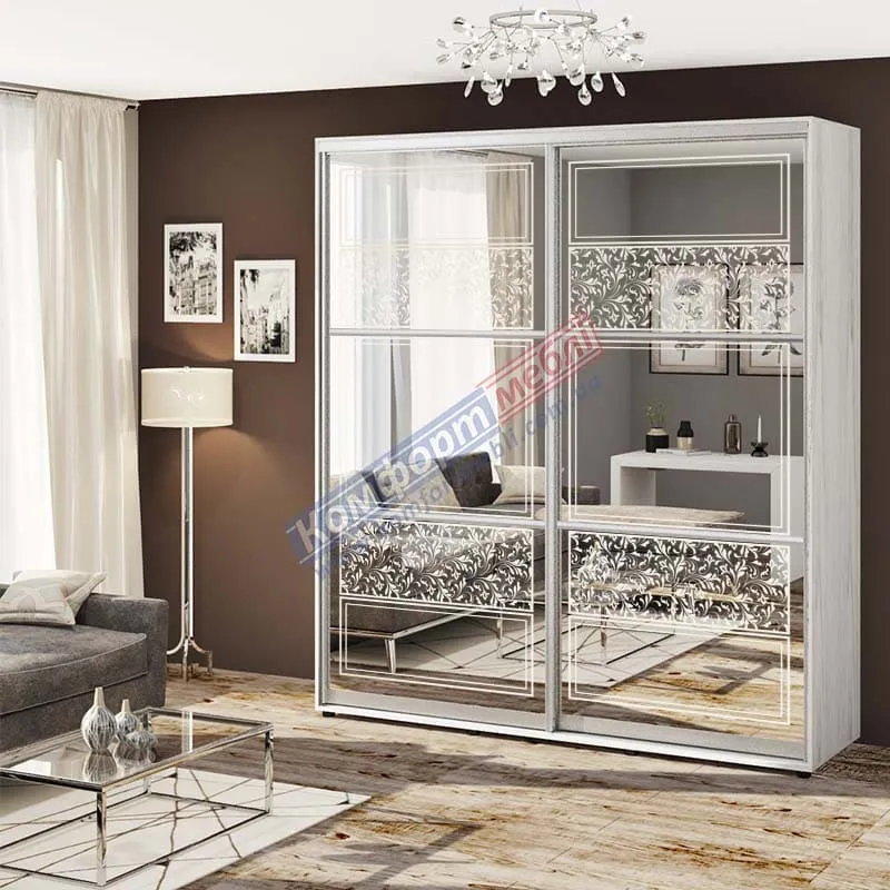 Шафа купе 90 см Комфорт "Дзеркало" 2 дверна дуб білений
