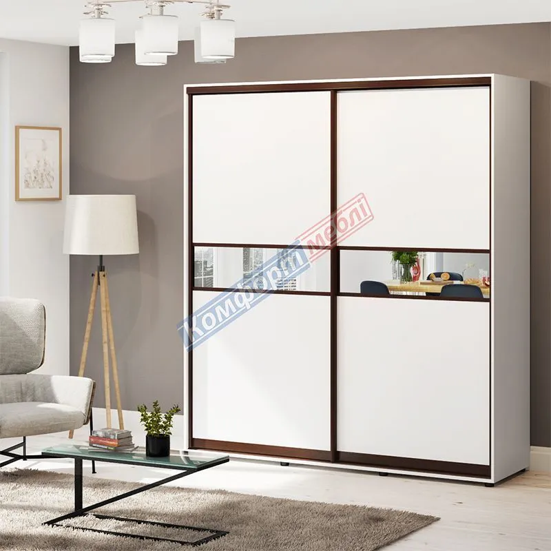Шафа купе 90 см Комфорт "Модель 2" дводверна білого кольору