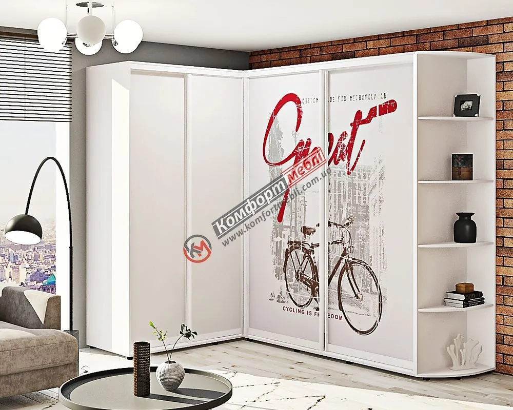 Шафа-купе "Скло фотодрук" кутова світла