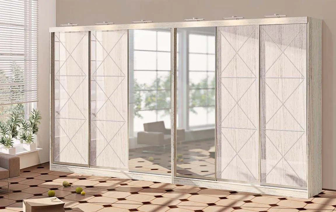Шкаф купе 520 см Комфорт "Прованс" глянец 6 дверный дуб беленый