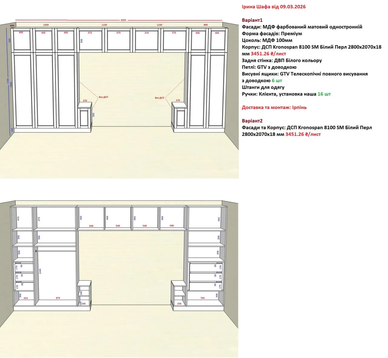 Залишилась задоволена якістю виробів та сервісом. Менеджер Андрій швидко та конкретно ознайомив з можливостями виготовлення та монтажу,що дало змогу швидко визначитись з замовленням.